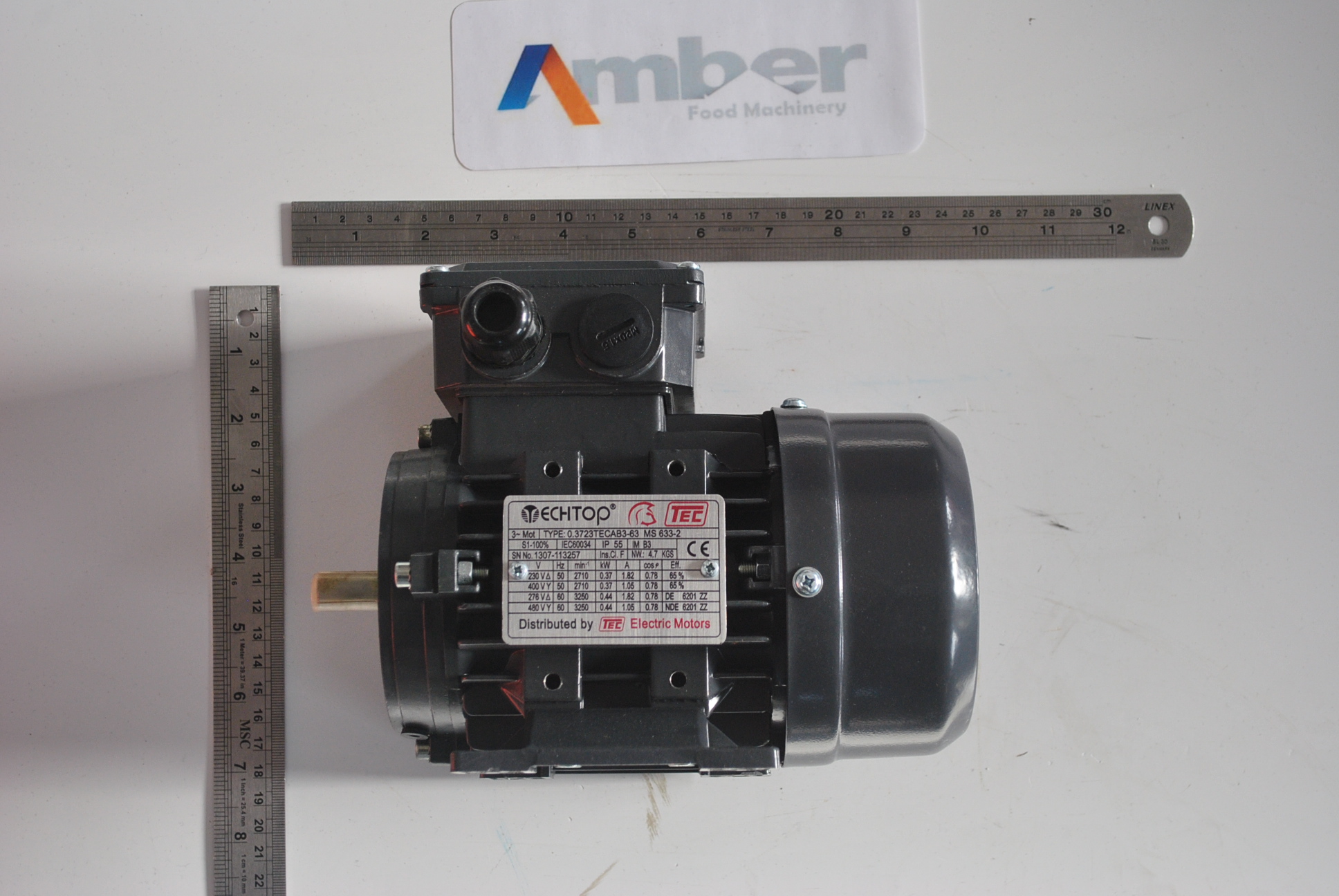 - Description: TEC IE1 0.37kW Aluminium Three Phase Motor 230V/400V 2 Pole 63 Frame B3